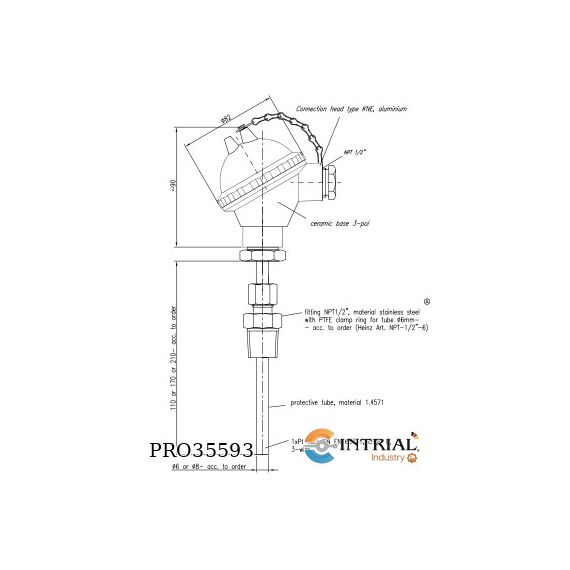 PT100-6W-6mm-170+Hilo1/2npt