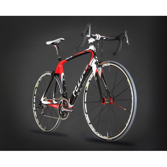 Next, take a look at the perfect blend of components. The Fore CR5 includes SRAM Red components shifters, brakes and derraileurs, FSA K-Force Light BB30 Carbon Crankset, Fezzari F4 XrT 3K carbon ultralite bladed carbon fork with carbon steerer tube, FSA K-Force compact carbon bars, FSA K- Force carbon seat post, and even carbon spacers on the headset.