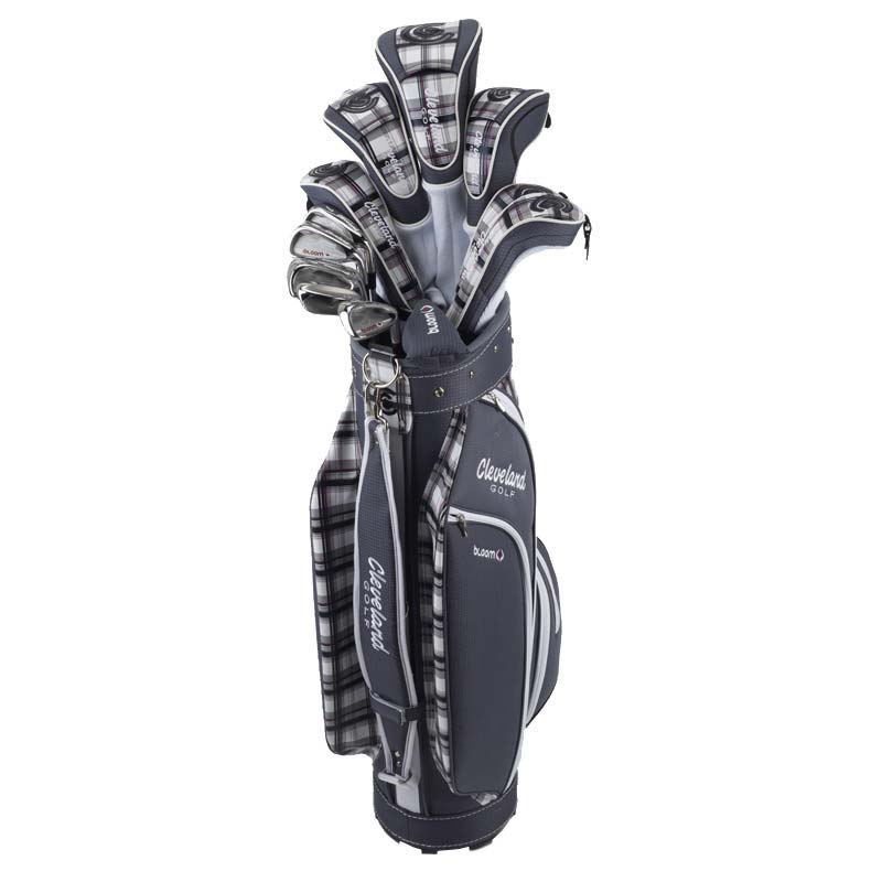 Created for women golfers looking to improve their game, the Bloom 14 Piece set covers all of her equipment needs. Designed specifically for her swing, the 100% titanium Driver and Stainless Steel Fairway woods are designed with today’s modern lightweight and oversized technology to drastically increase distance and consistency-particularly on mishits. The hybrid long irons are hollow and extremely forgiving and are packaged together with the short game simplifying NIBLICK – to make the game even easier to learn. If that isn’t enough, the classically designed mini boot bag has retro details yet modern convenience with ample pocket space and detachable wristlet.